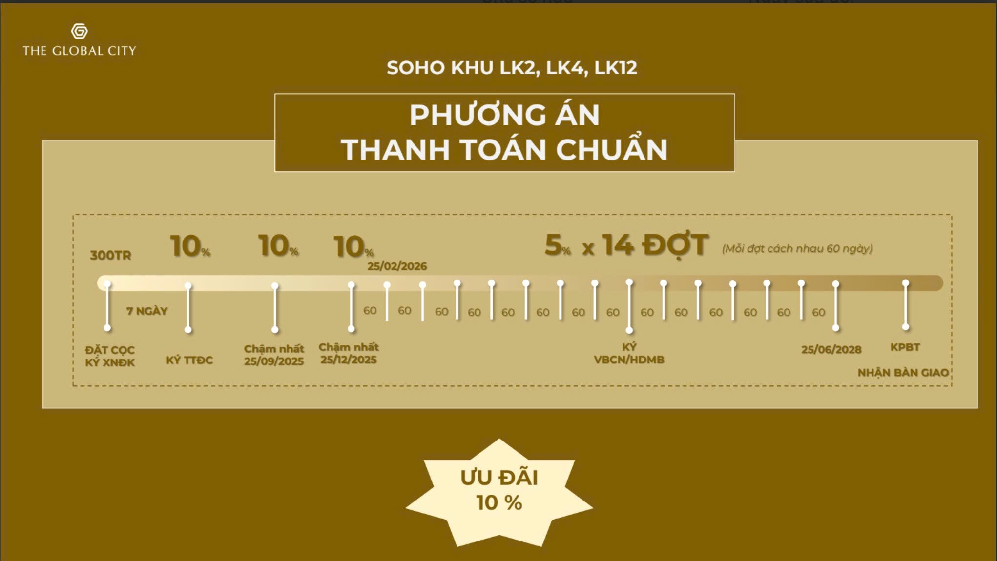 The Global City는 Masterise Homes의 국제적 수준의 복합 도시 개발 프로젝트로, 2군의 '다이아몬드' 위치에 자리잡고 있습니다. Foster + Partners(영국) 및 WATG와 같은 세계 최고의 파트너들과 협력하여, 이 프로젝트는 동남아시아의 '뉴 시티 센터'가 될 것으로 기대됩니다. 117.4 헥타르에 걸쳐 낮은 건설 밀도로 조성된 The Global City는 국제 커뮤니티를 연결하는 친환경적이고 지속 가능한 생활 모델을 지향합니다.